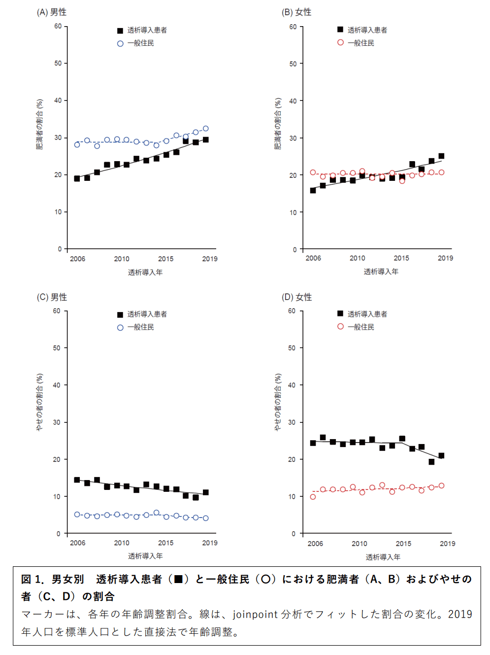 「日本の末期腎疾患患者における過体重と肥満の増加傾向」(原文はここ)
